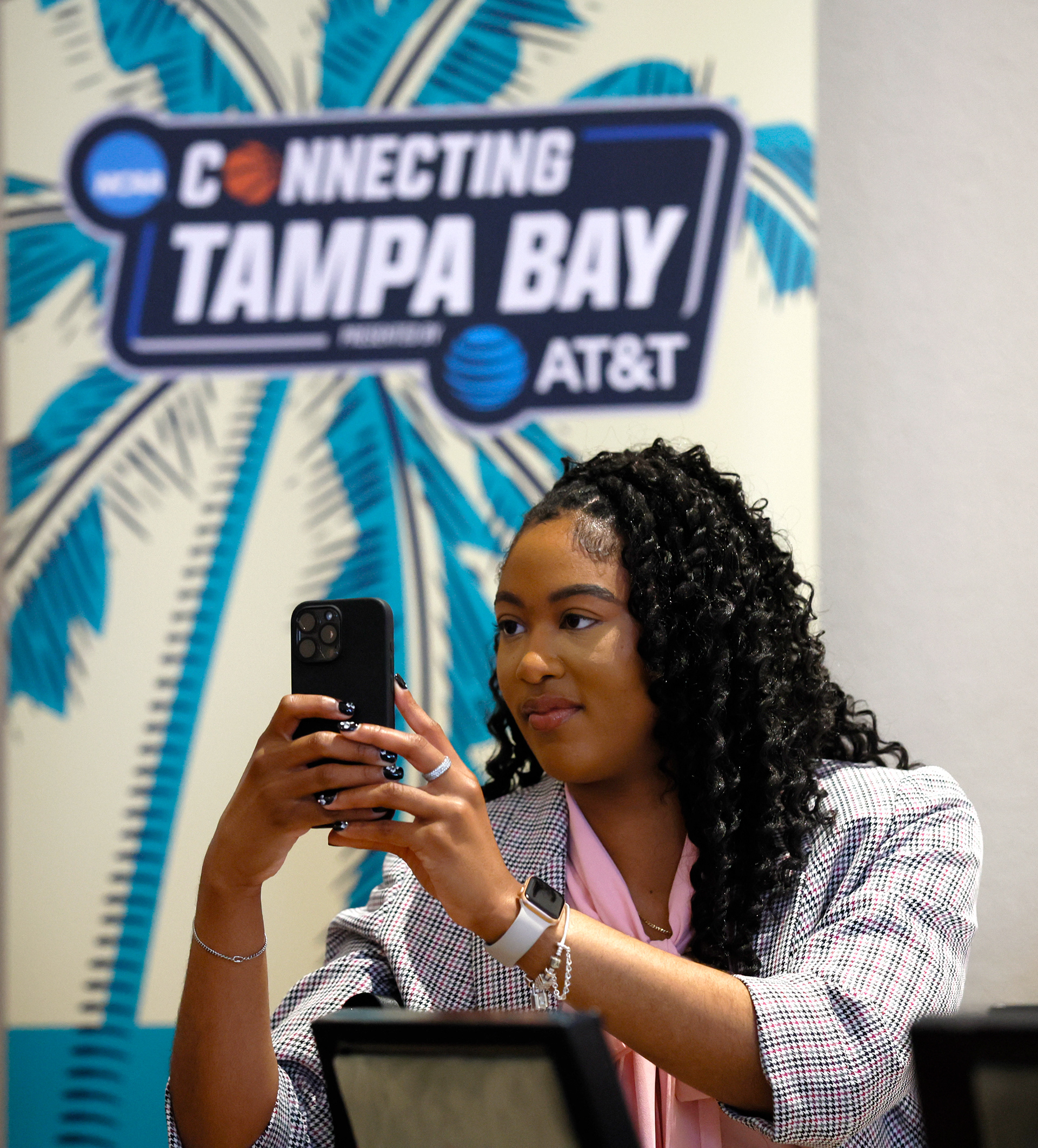 AT&T welcomed athletes to "Connecting Tampa" a beautiful space with the aim to connect student athletes to key sports professionals and each other. Students sat in on a panel discussion with NCAA professionals and elevated their professional game with a headshot at the Portrait Studio. At the AT&T Connected Corner, each student paired up with the panel talent for a one-on-one speed networking session.